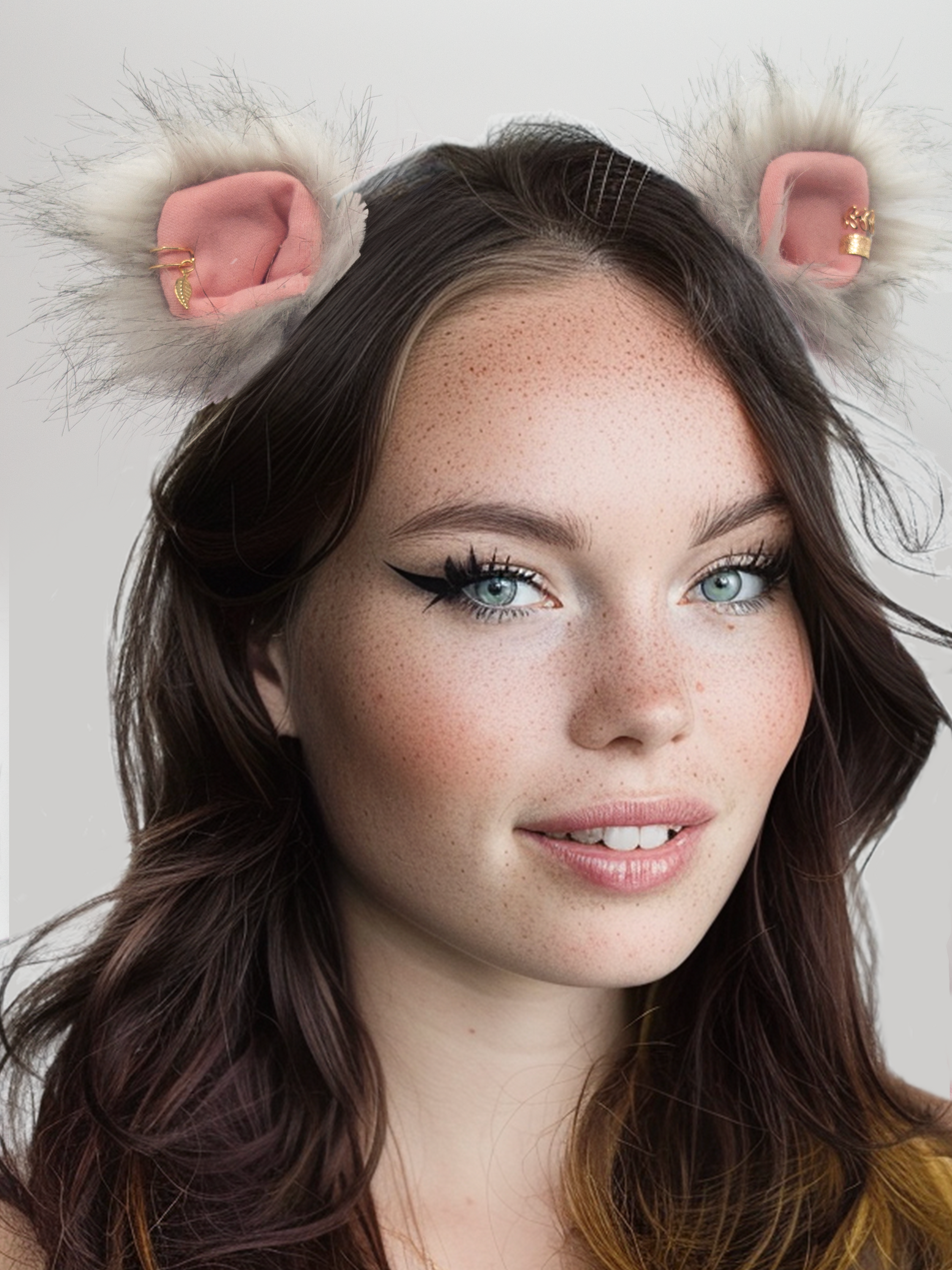 The outer part of the ears is crafted from soft and fluffy grey faux fur, adding an element of elegance and sophistication to the playful design. The inner ear is made of soft pink cotton. These clip-in ears are a fun and charming addition to your ensemble and a versatile accessory that can be easily attached or removed.