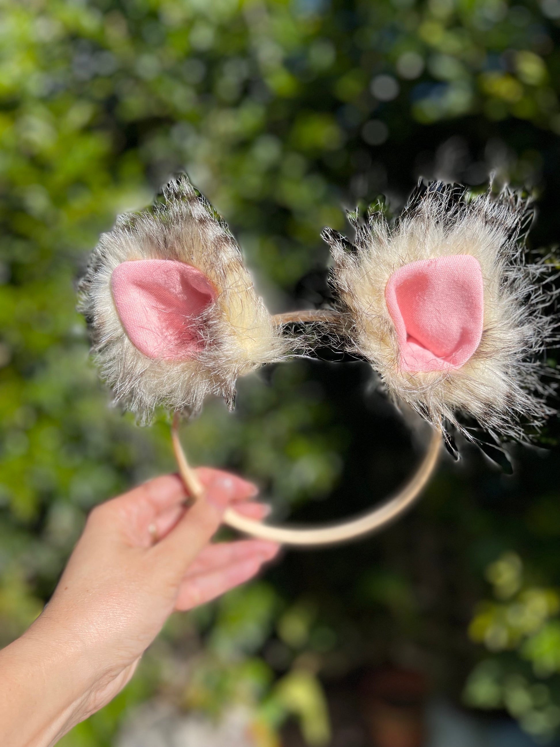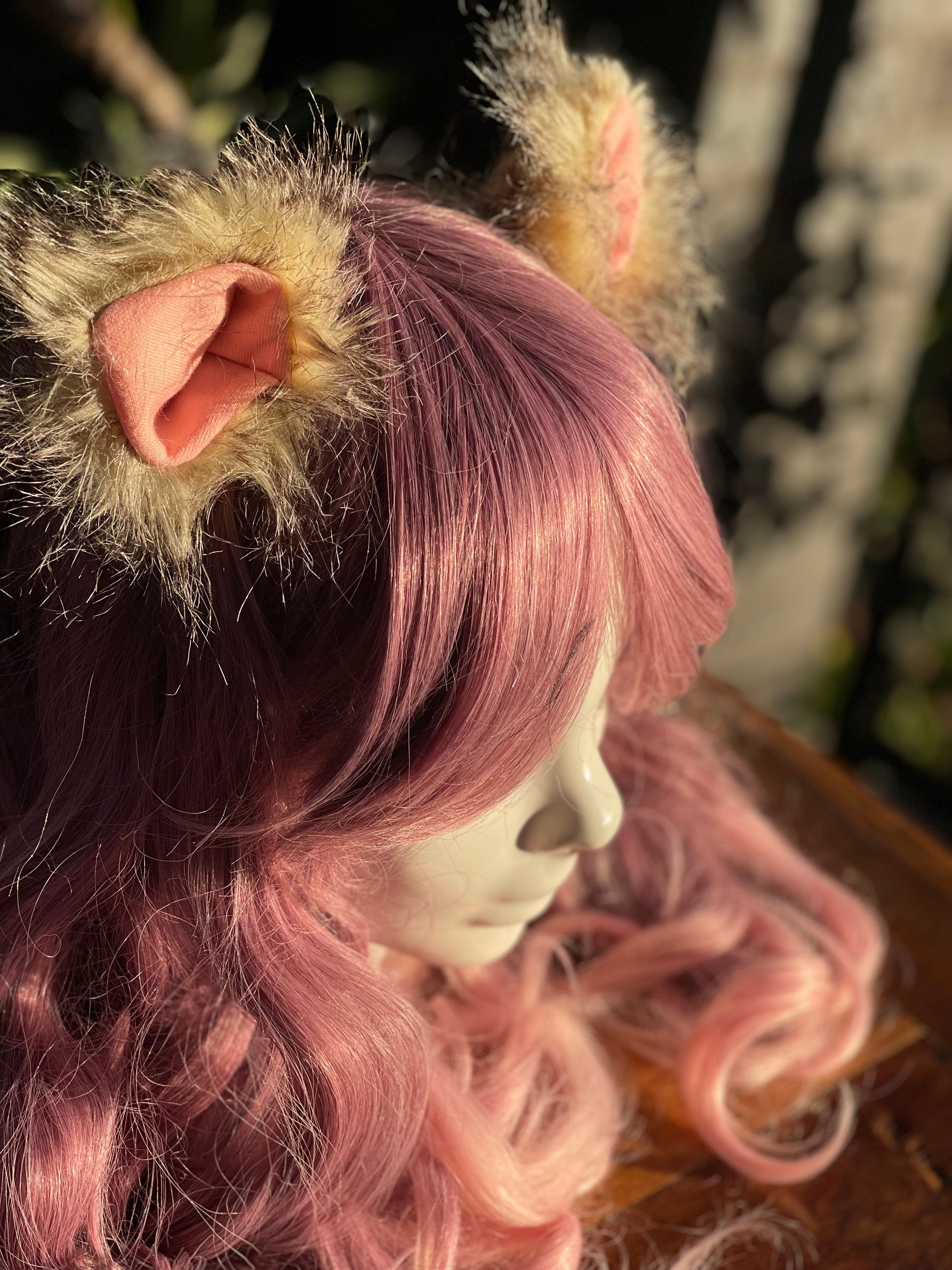 These handmade ears boast a unique design, with a natural pink lining nestled within the Blonde Raccoon faux fur.