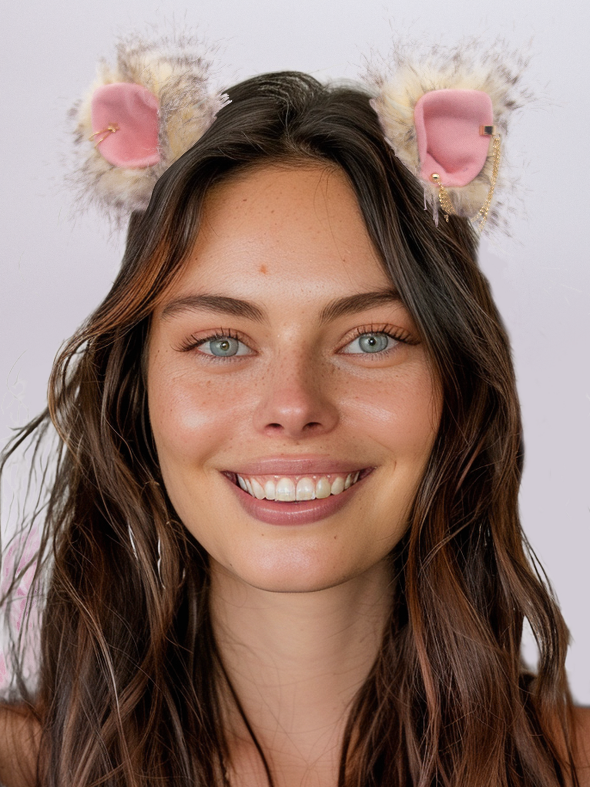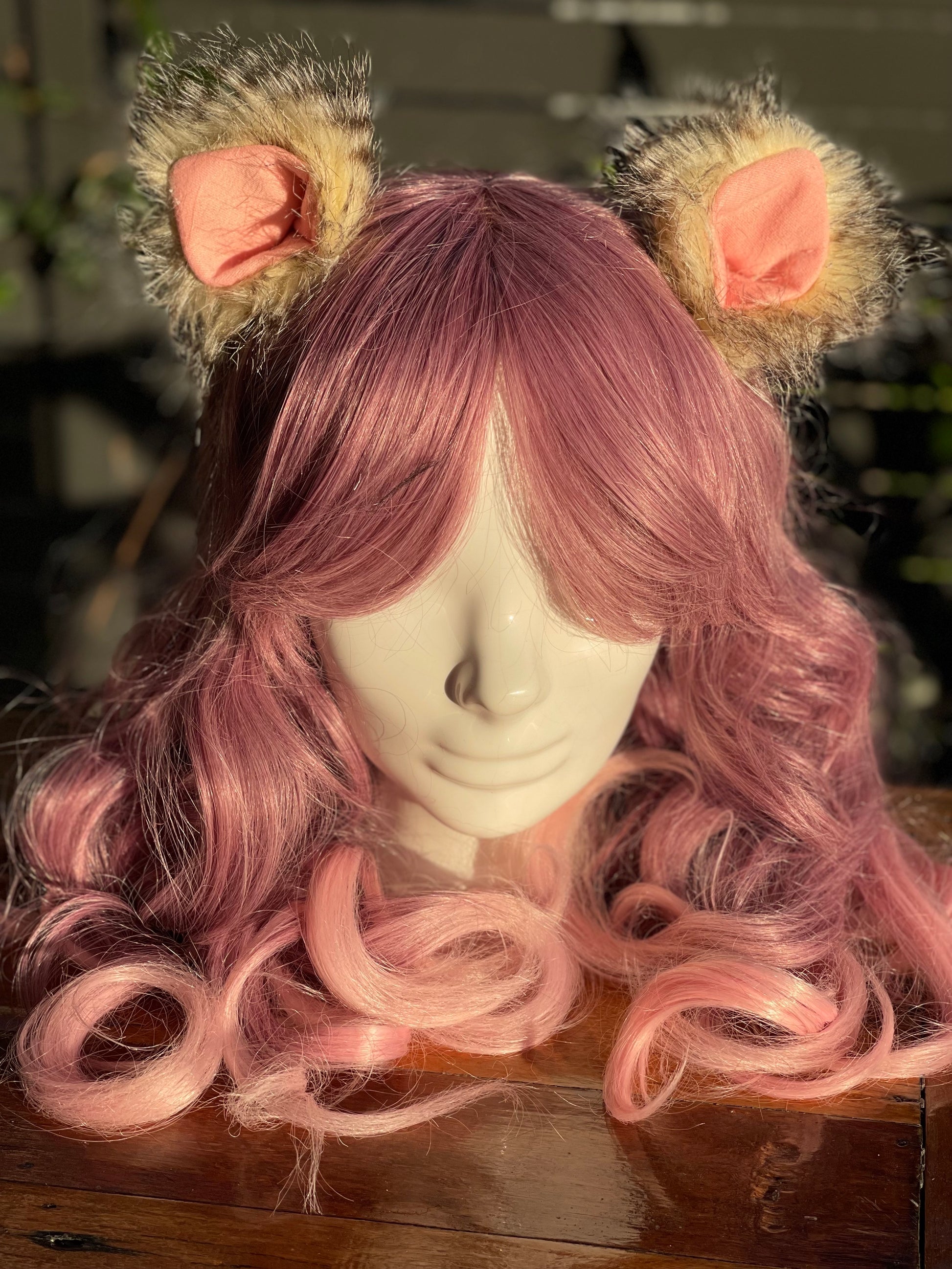 The outer part of the ears is crafted from soft and fluffy Blonde Raccoon faux fur, That would suit most dark hair types. The inner ear is made of a pink cotton lining. These clip-in ears are not only a fun and charming addition to your ensemble but also a versatile accessory that can be easily attached or removed.