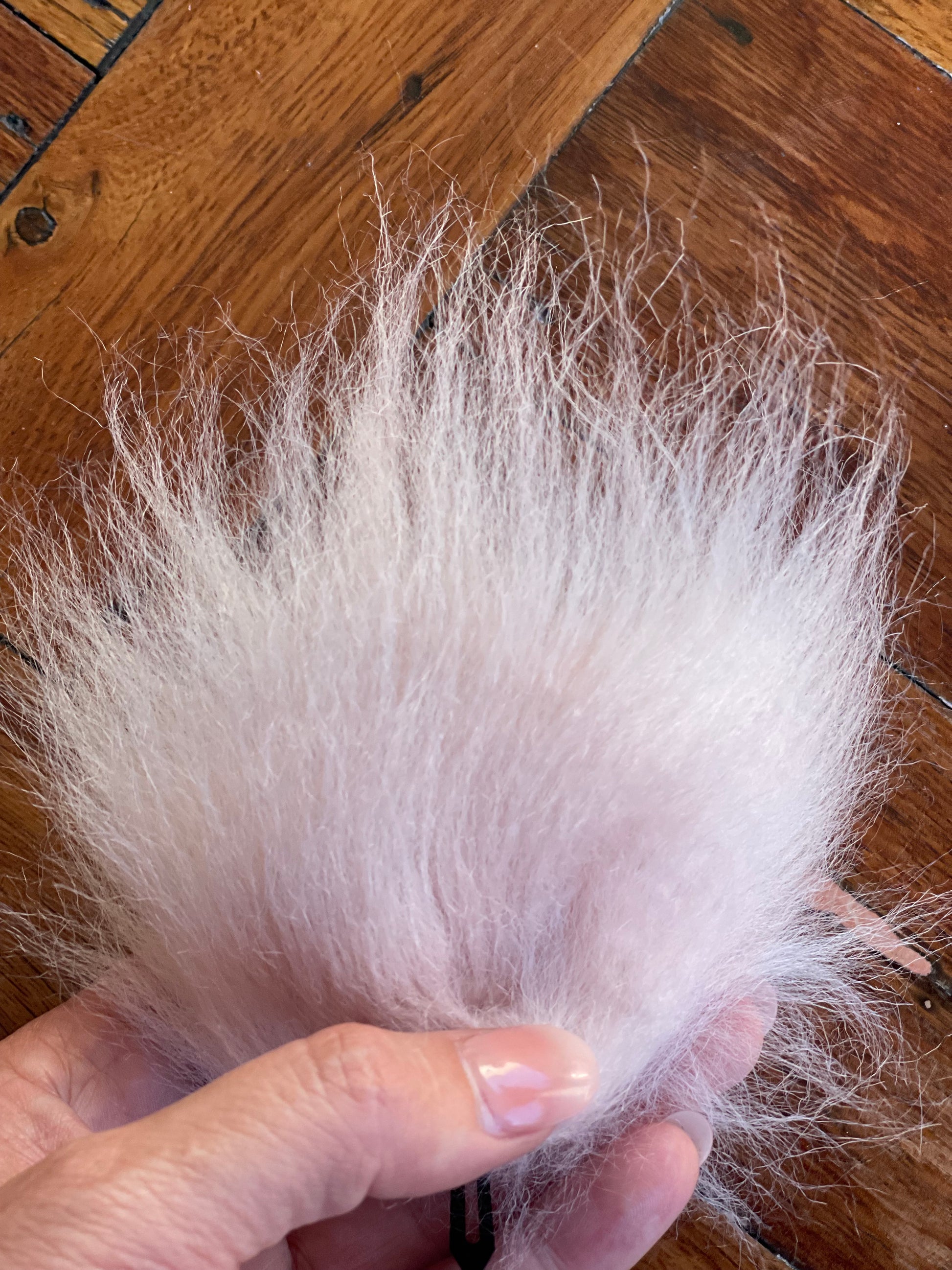These handmade ears boast a unique design, with a natural pink lining nestled within the Dusty Pink Mogolian faux fur.